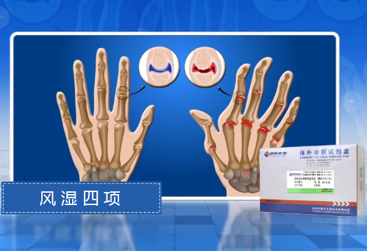 风湿病的早期辅助诊断。 风湿免疫抗体四项检测为:抗环瓜氨酸肽抗体(CCP)、抗核周因子抗体(APF)、抗角蛋白抗体(AKA)、抗核抗体(ANA)。